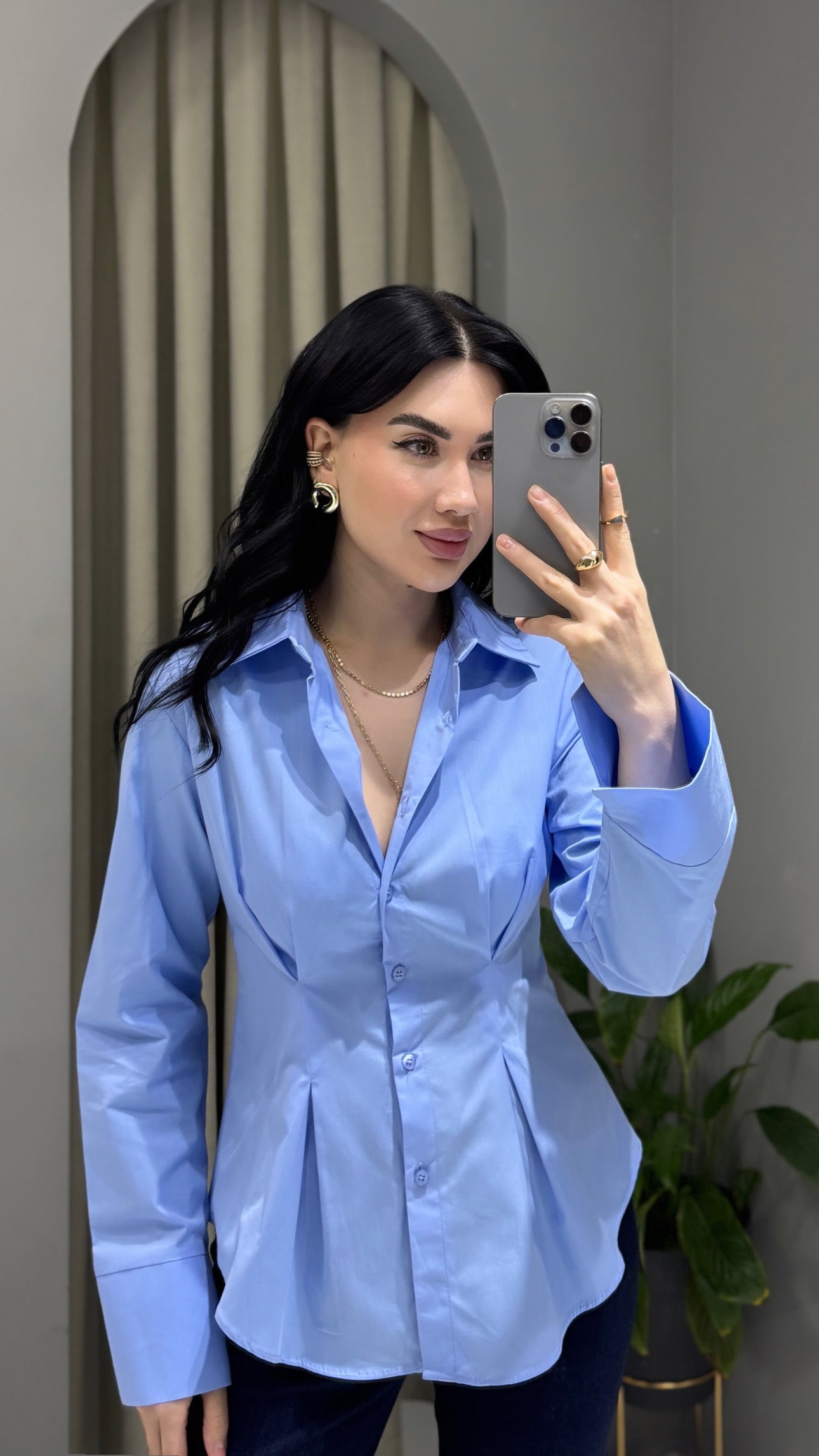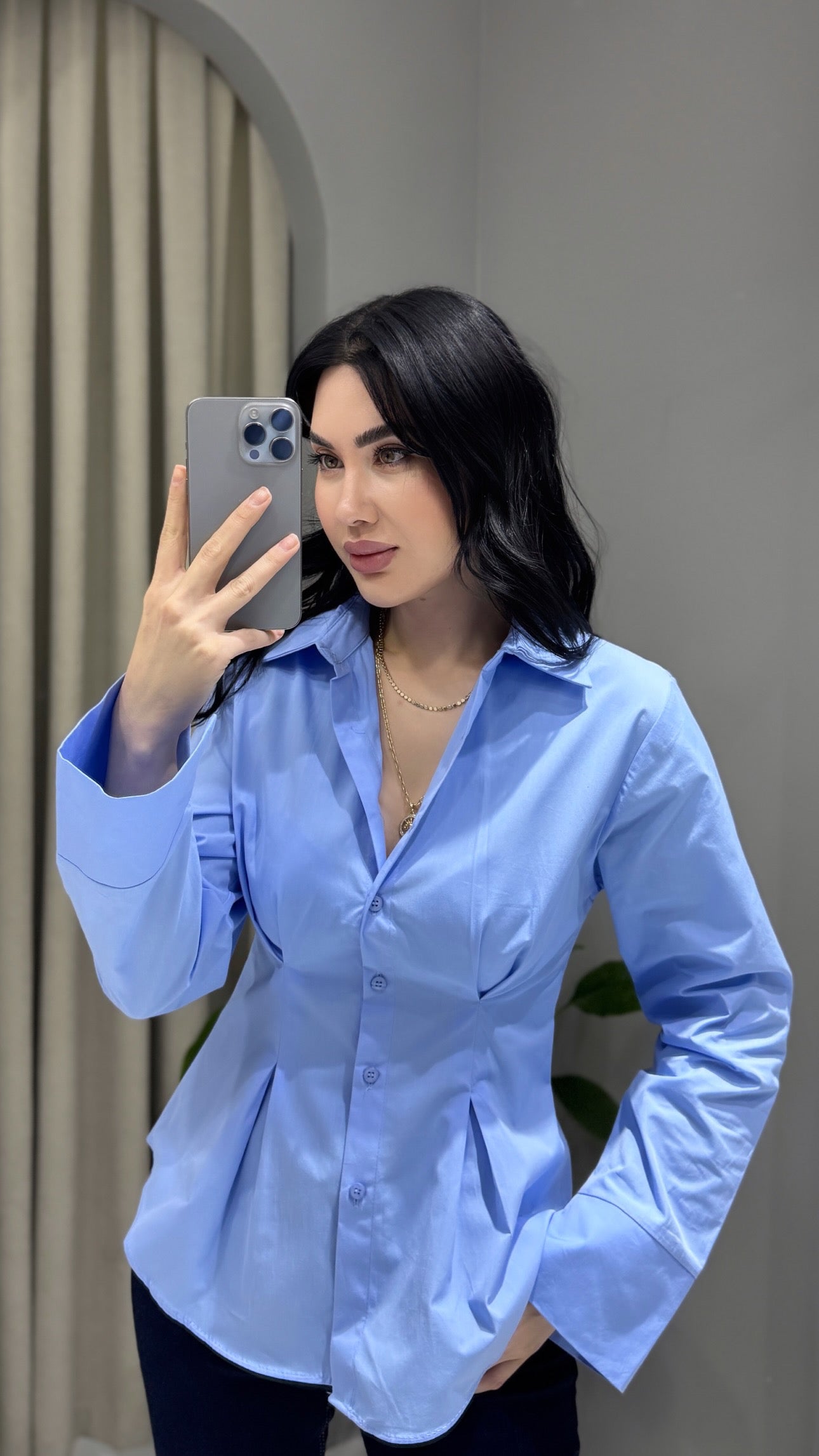 BELDEN OTURTMALI PİLELİ POPLİN GÖMLEK BEBE MAVİ