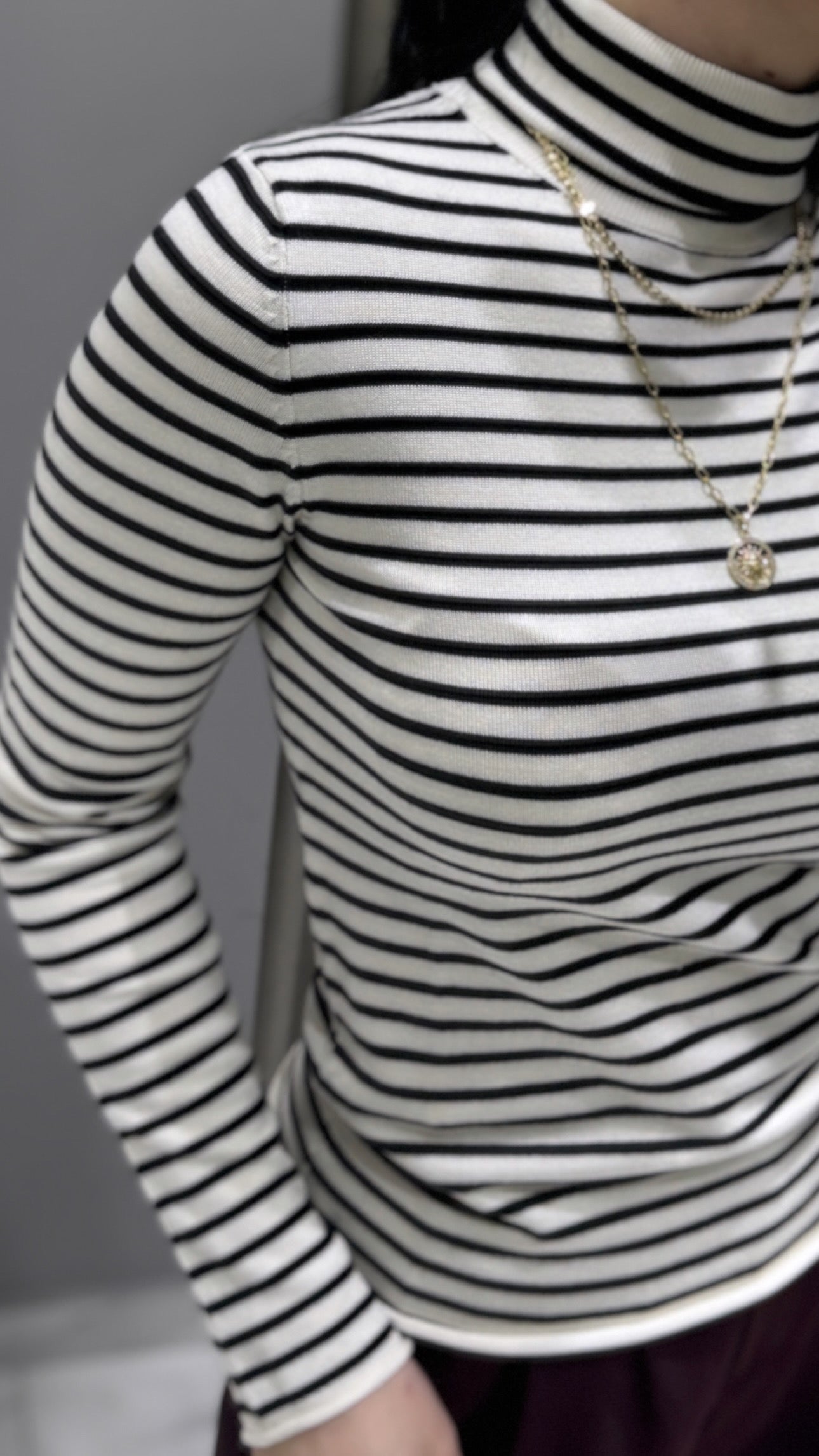 DİLVİN ÇİZGİLİ BOĞAZLI İNÇE TRİKO STANDART BEDEN
