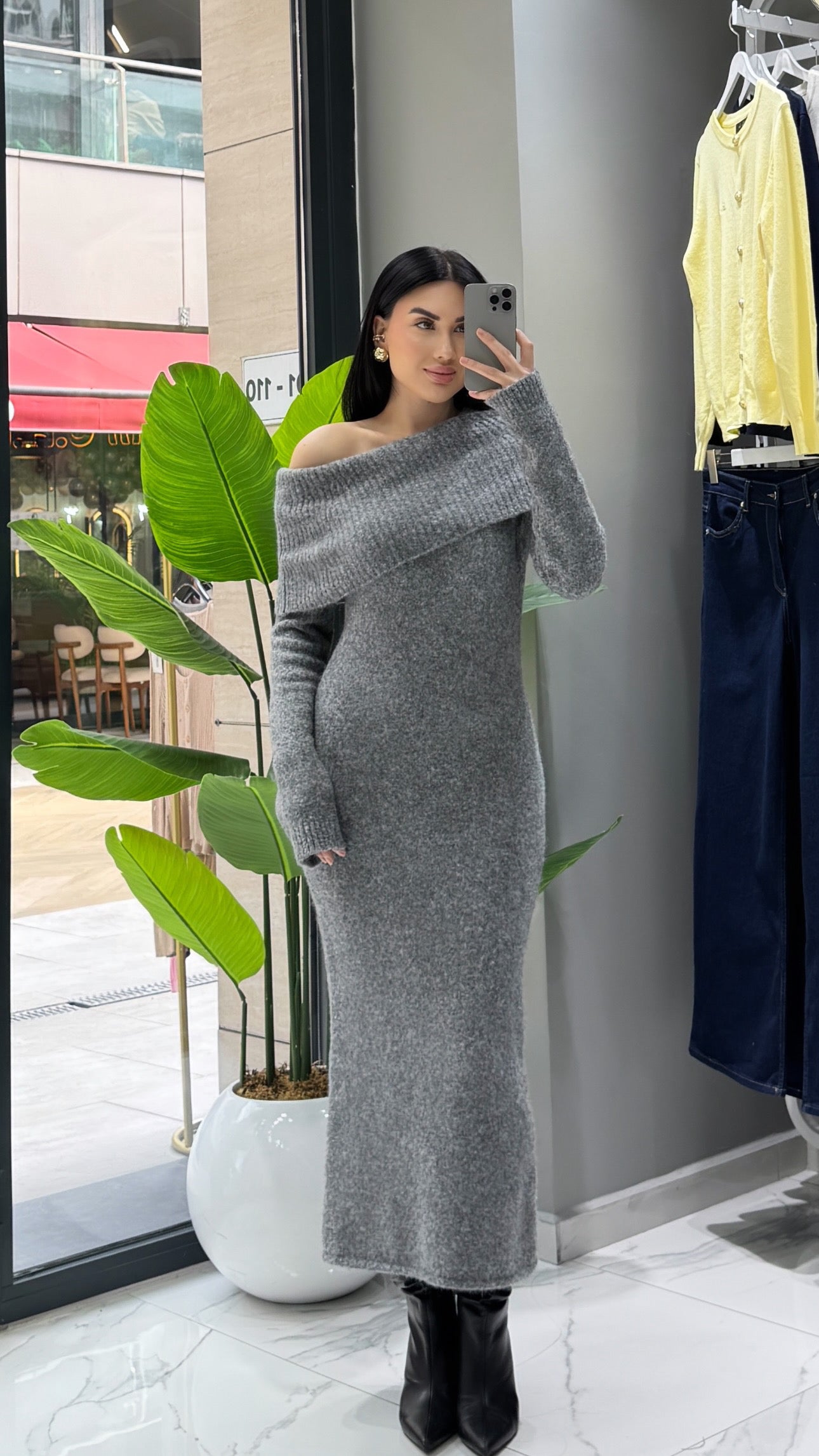 MADONNA YAKA YUMŞAK DOKULU TRİKO KUMAŞ ELBİSE STANDART BEDEN