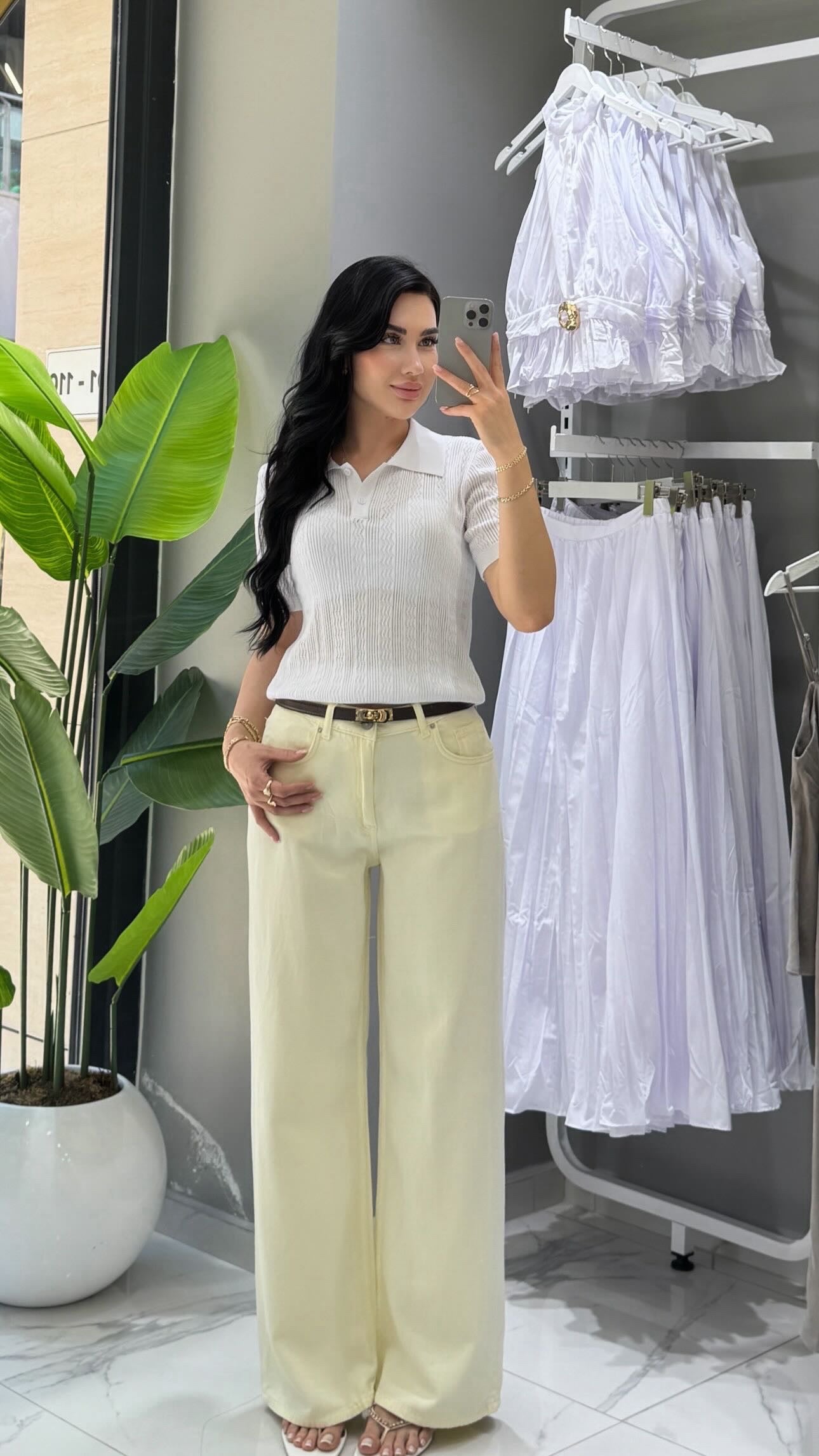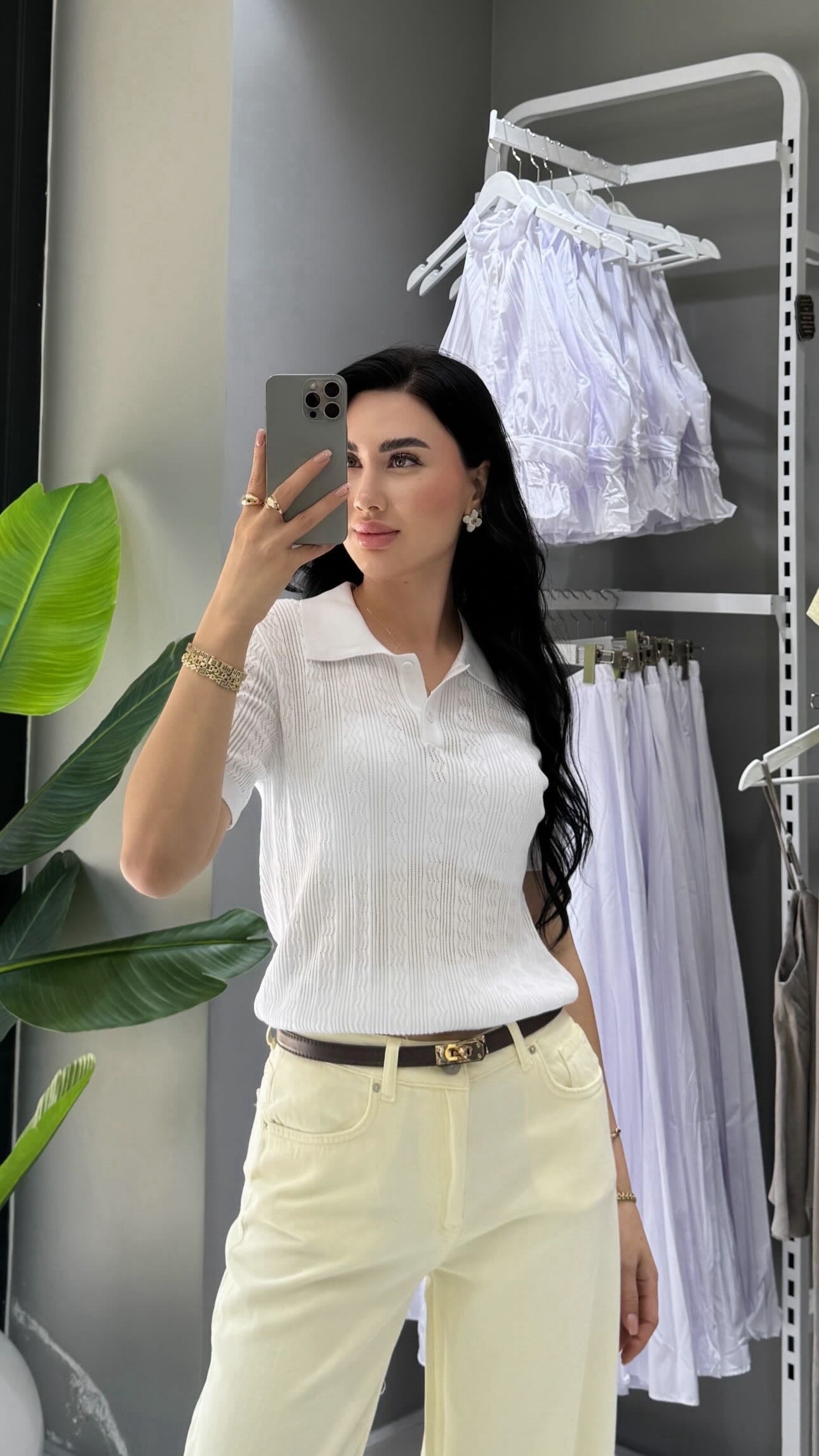 Polo Yaka Bluz Transparan Düğmeli Standart Beden