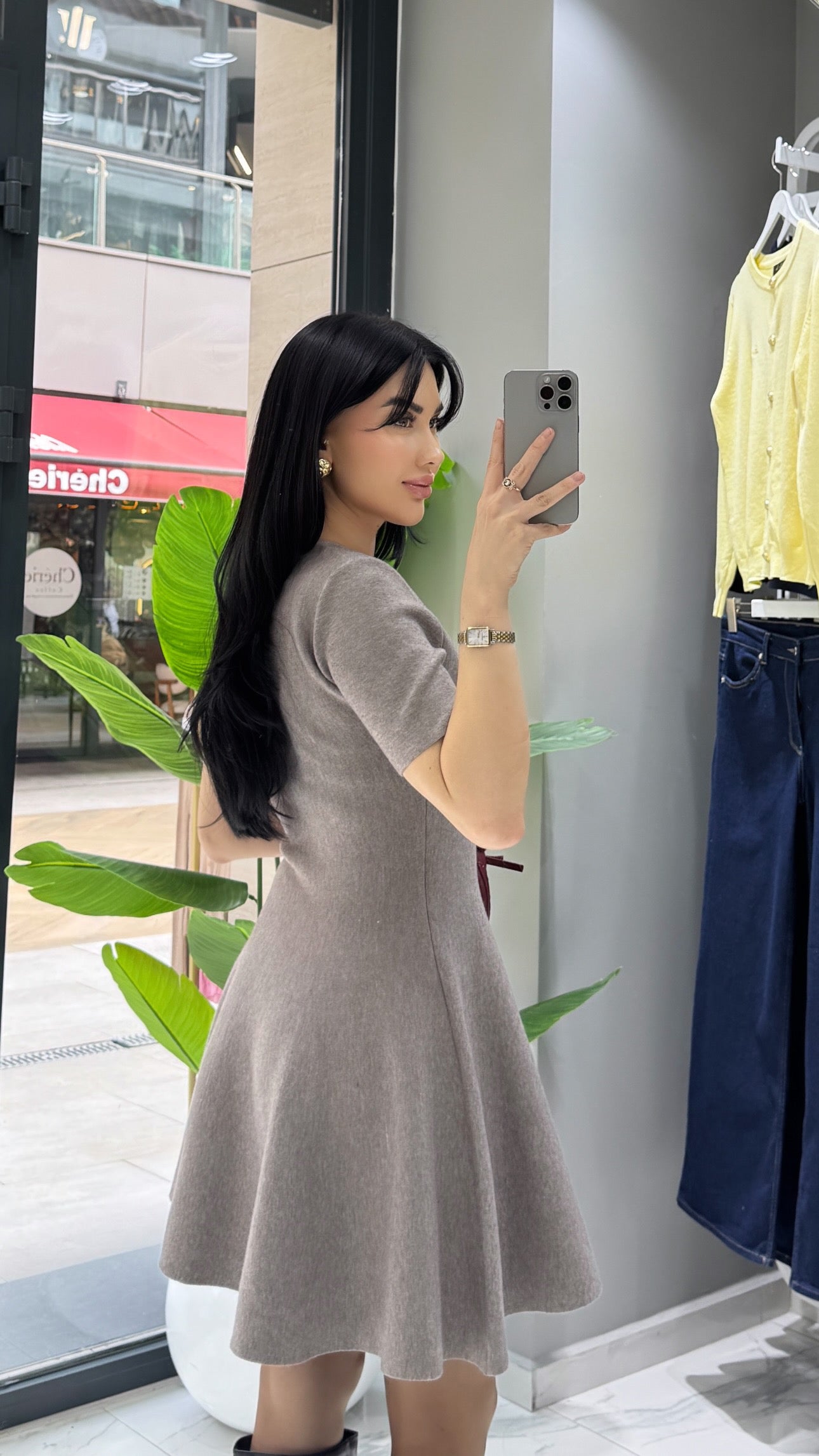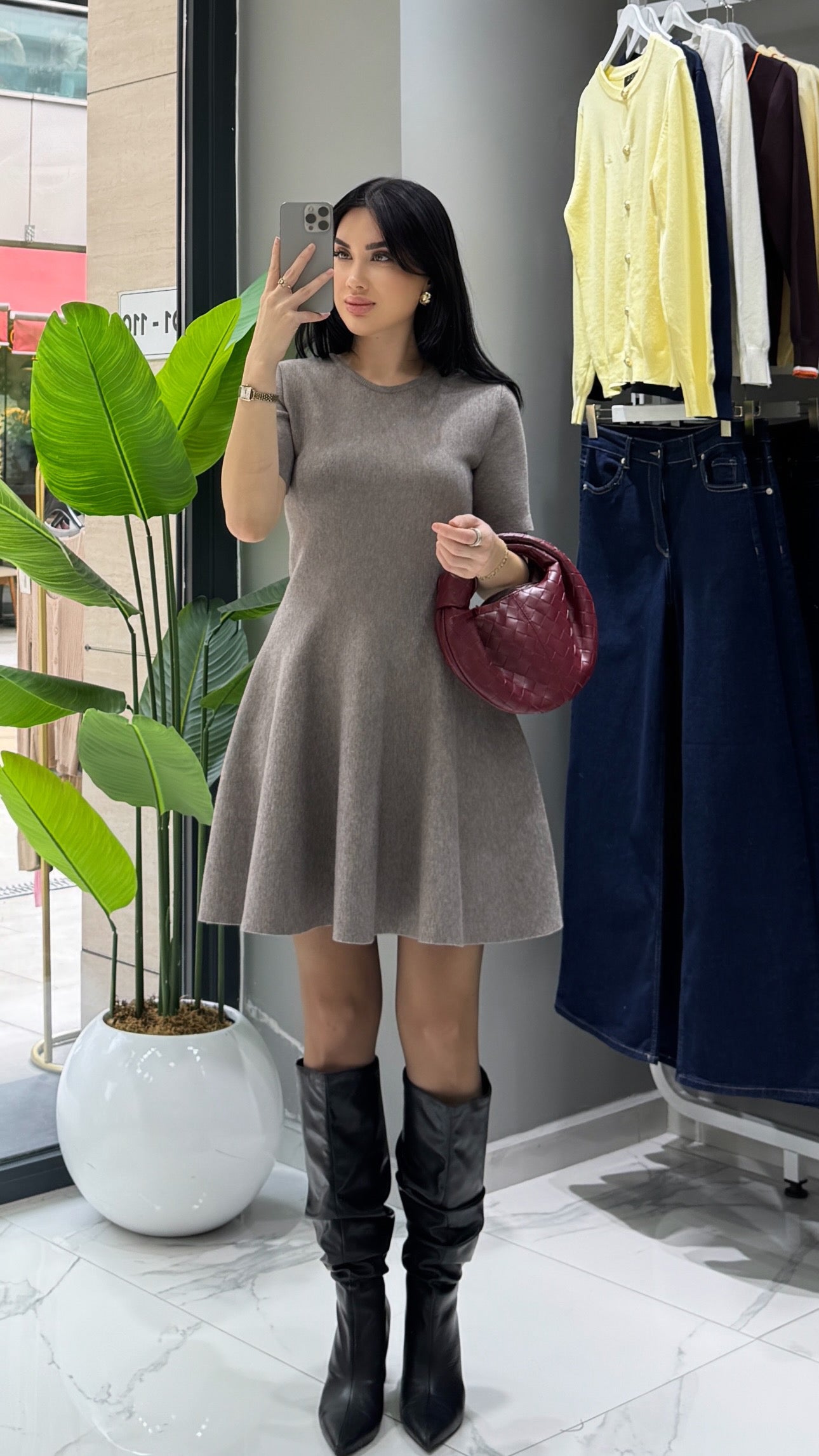 BİSİKLET YAKA YUMŞAK DOKULU TRİKO VALONLI ELBİSE